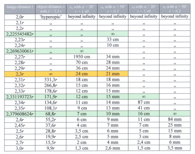 • The focal length (as a function of the lens radius: f / r) is not the same in all fish species. In cichlids the focal length equals 2,3 times the lens radius