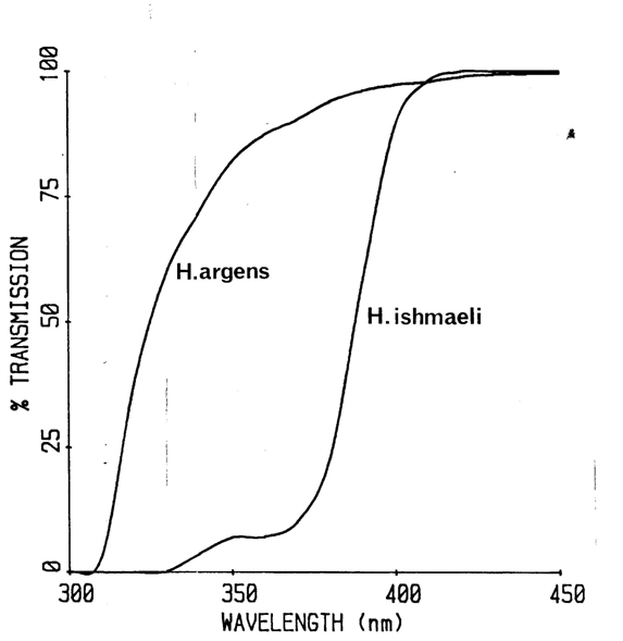 Although the eyes of H. argens were relatively larger than the eyes of H. sauvagei, no specific difference in shape could be established. The eye shape did not change with eye size.