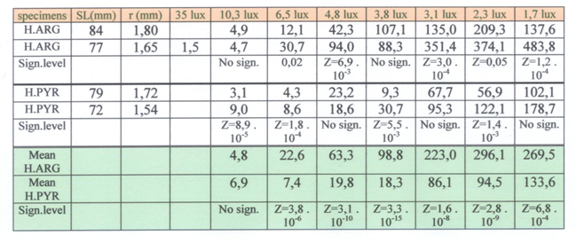 Although almost completely disappeared from its natural environment, H. argens still forms part of the life-stock in various laboratories. So, light dependent feeding behaviour of this species could still be investigated, together with cone morphology of colour deprived and normally raised specimens of H. argens in comparison with its close relative H. pyrrhocephalus.