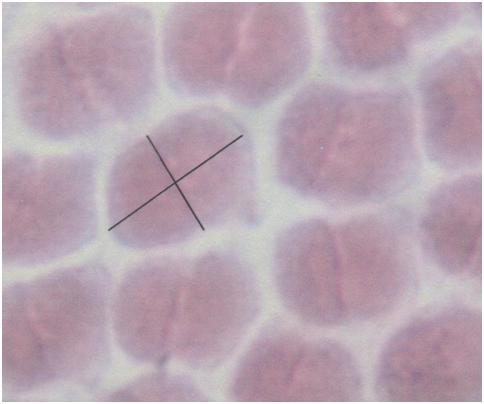 where m is the number of nuclei per field, t is the thickness of the section, d is the approximate diameter of the concerned nuclei and f is the thickness of the smallest fragments of recognized nuclei with an estimated value of f = 0,25 d. All planimetric densities are presented as numbers of cells per 0,01 mm2.